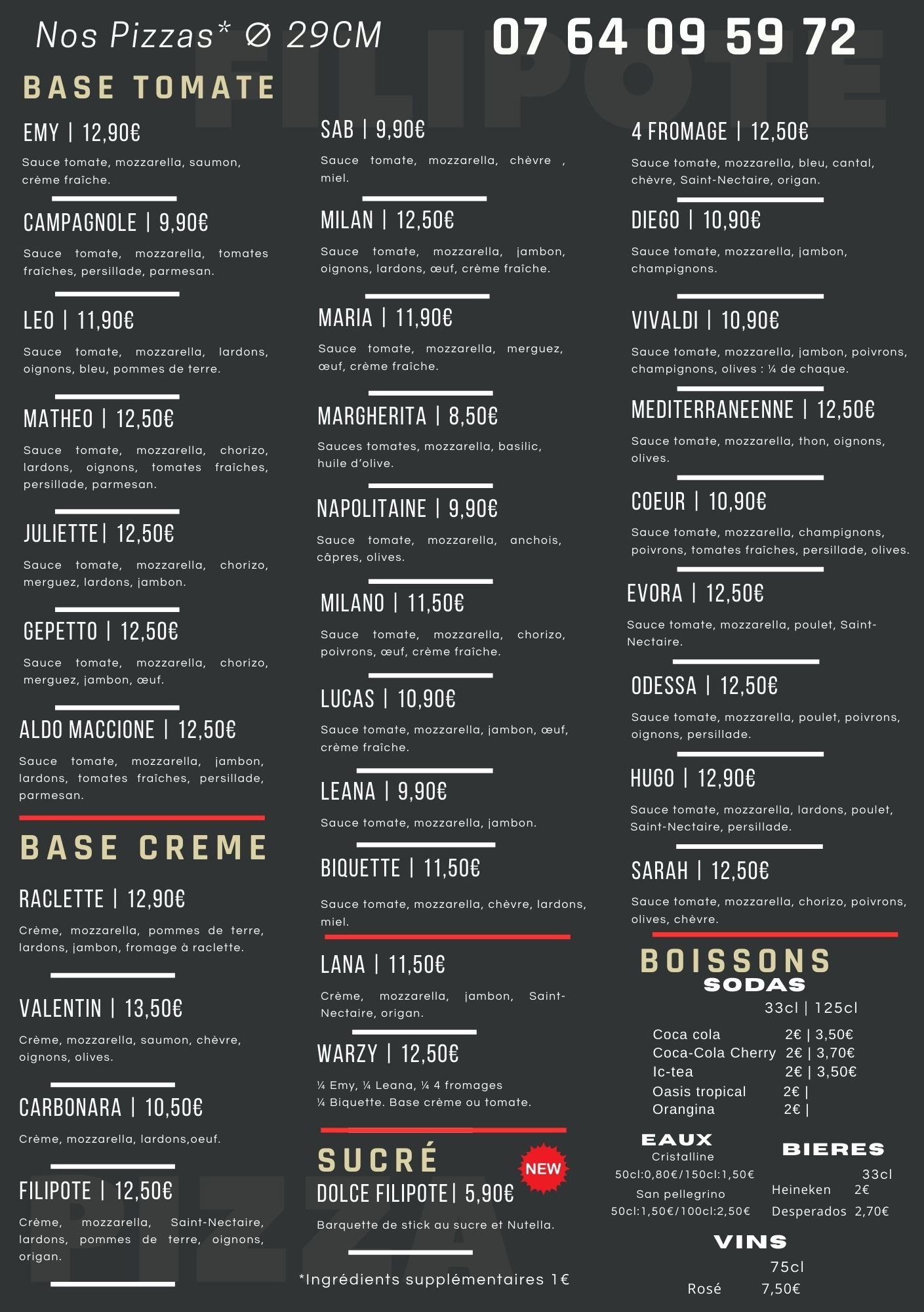 Chez Filipote Pizza redécouvrez la saveur authentique des pizzas italiennes avec des ingrédients minutieusement sélectionnés.